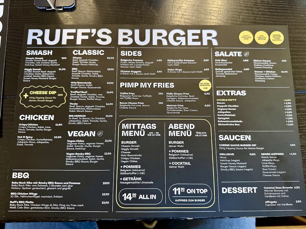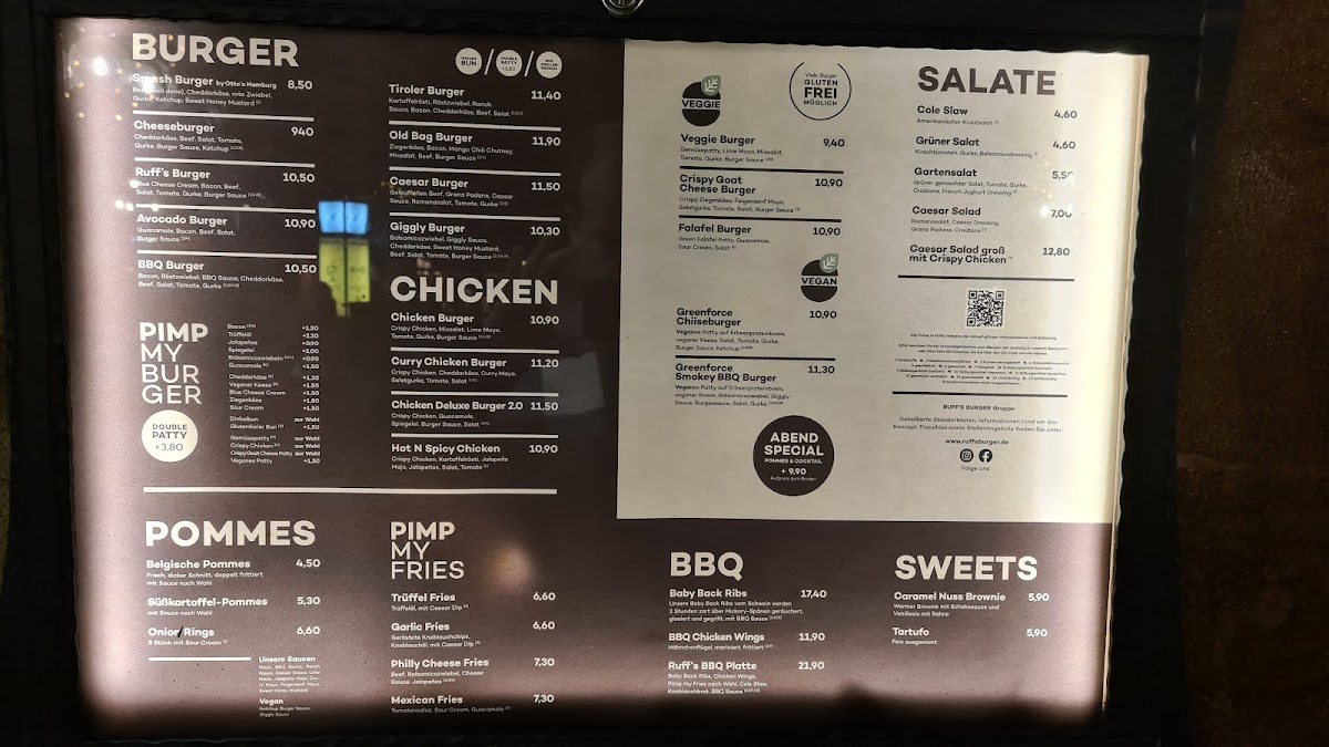 Discover the mouthwatering offerings at Ruff's Burger & BBQ Nurnberg, a premier hamburger restaurant located at Konigstraße 55 in Nuremberg, Germany. Renowned for its delicious burgers, this cozy eatery blends modern service with classic flavors. Customers rave about their signature creations like the “giggly burger,” complemented by options like crispy sweet potato fries.